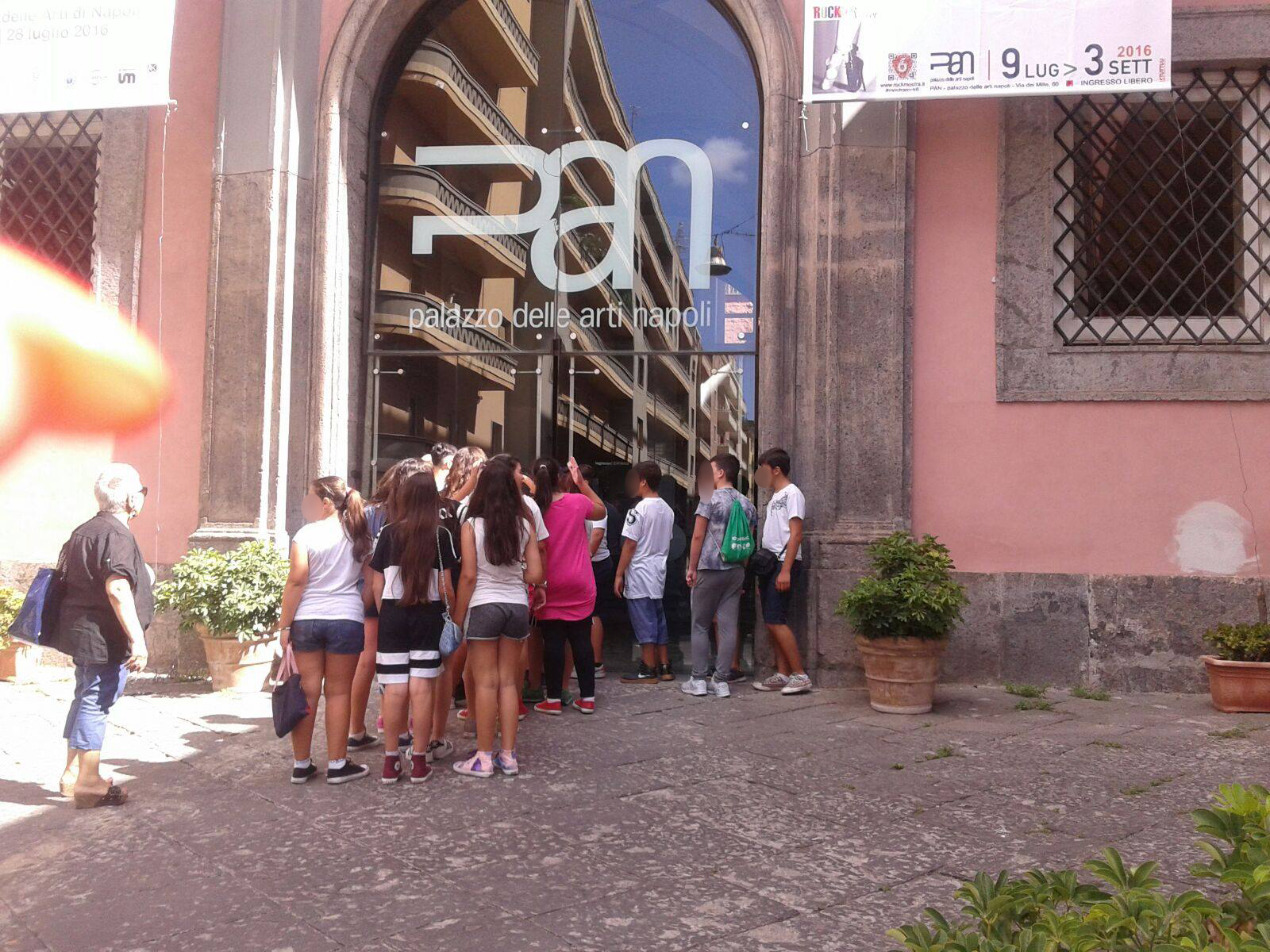 Abbiamo visitato il PAN, il palazzo delle Arti che si trova a Napoli e che ha sede dal Marzo 2005 nel settecentesco Palazzo Roccella in via dei Mille n°60. Il nostro gruppo ha visitato alcune mostre libere di artisti contemporanei, le cui opere sono state realizzate con materiale di riciclo. Successivamente abbiamo visitato una mostra molto originale: “ROCK 6! Presenta Icone” nata da un’ idea di M.Iossa e C. Aymone. All’interno del percorso strutturato abbiamo avuto la possibilità di ammirare quadri, riproduzioni e fotografie della nota Rock Star “Madonna”; in anteprima mondiale, poi, abbiamo visto le foto scattate nell’ultimo suo concerto tenutosi a Los Angeles. Le riproduzioni e le foto erano veramente entusiasmanti! Siamo rimasti tutti a bocca aperta, che meraviglia! Abbiamo ascoltato con attenzione le notizie che ci sono state fornite dai curatori della mostra e abbiamo rivolto loro tantissime domande piene di curiosità. In ogni sala abbiamo potuto apprezzare riproduzioni fotografiche, oggetti della quotidianità, abiti di scena, appartenuti ad artisti e gruppi internazionali del calibro di: David Bowie, Beatles, George Martin, William Shakespeare. La cosa che più ci ha meravigliato è stato ritrovare Caravaggio e Shakespeare all’interno di una mostra dedicata alla musica. I curatori ci hanno spiegato che con la loro arte hanno dato un’impronta significativa alla musica rock pur non essendo musicisti. Caravaggio di per sé era un ribelle sia per la vita che conduceva che per le opere d’arte prodotte. Shakespeare, invece, con le sue tragedie ha manifestato una rottura rispetto al passato. Entrambi però sono artisti dall’animo rock. Questa emozionante giornata è stata poi immortalata in Strike a Pose, un concorso fotografico. La nostra foto sarà inviata alla Foto Gallery Rock!6 e tutti speriamo di ricevere il premio come migliore posa. Conclusa la visita siamo tornati a casa con gli occhi pieni delle bellezze ammirate durante il giorno.