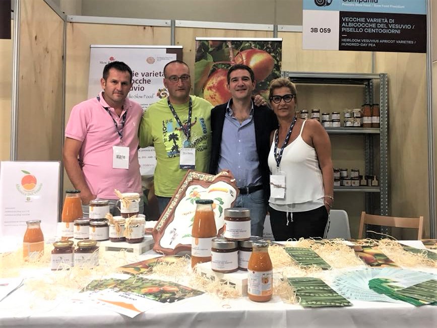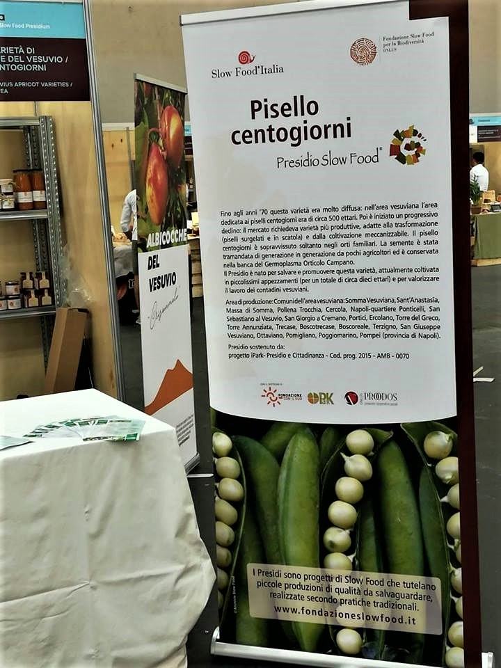 Slow Food Vesuvio ha dato il meglio di se con un programma molto intenso ed un gruppo di lavoro che ha saputo ben coniugare impegno e leggerezza. Molto è dovuto alla grande energia della fiduciaria Maria Lionelli, instancabile fucina di idee e capace di coinvolgere un po’ tutti. Un piccolo incidente l’ha costretta a casa, ma imperterrita ha guidato i lavori e dato coraggio a chi invece era lì. Grande attenzione è stata data ai nuovi presidi dell’Albicocca del Vesuvio e Pisello Centogiorni, inseriti nel programma delle 28 new entry nazionali. L’albicocca del Vesuvio è stata protagonista della Colazione Vesuviana con pane arrivato dai vecchi forni di questo areale, e confettura di Albicocche del Vesuvio, la Crisommola. Dal comune di Trecase è giunta l’assessore all’Agricoltura Ilia Porzio per raccontare il progetto Comune Slow messo in campo con la condotta Slow Food Vesuvio. Trecase è il paese storico del Pisello Centogiorni, l’unico legume fresco divenuto presidio. La campagna di promozione di questo prodotto sta ottenendo ottimi risultati, sono diverse le richieste di fornitura che incoraggiano i piccoli agricoltori a investire ulteriormente in tale direzione. Lo chef Pasquale Palamaro, stella Michelin del ristorante Indaco di ischia, ha realizzato un piatto con i piselli arrivati dal Vesuvio nello spazio Pasta Di Martino: pasta e piselli con polvere di camomilla e crema di gambero rosso. Un altro momento che ha registrato una partecipazione entusiasta e numerosa è stato il Festival dei Pomodori, condotto da Fofò Ferriere, patron del ristorante e birreria Tallioo di San Giorgio a Cremano, insieme a Patrizia Spigno, fiduciaria Slow Food Vesuvio uscente e agronoma ricercatrice specializzata nel settore dei pomodorI. Consiglia Izzo, architetto che ha scelto di stare in cucina, e suo marito Luigi Russo, dirigono il ristorante La Lanterna di Somma Vesuviana e insieme hanno conquistato il pubblico con due piatti della tradizione, insalata di rinforzo con baccalà e peperoni cornetto ripieni. Domenica ha chiuso gli appuntamenti vesuviani il giovane pizzaiolo Nicola Falanga, della pizzeria Haccademia di Terzigno, specializzato nell’uso di farine da grani antichi e profondo conoscitore dei prodotti che ricerca con cura nelle piccole aziende artigiane campane.