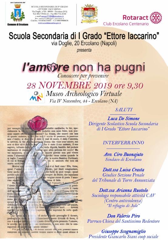 Nell’ambito delle iniziative dedicate alla sensibilizzazione sulle tematiche della conoscenza finalizzata alla prevenzione degli atteggiamenti violenti sulle donne, lo scorso 28 novembre si è svolto al MAV Museo Archeologico Virtuale di Ercolano (NA) il convegno “L’amore non ha pugni. Conoscere per prevenire”.