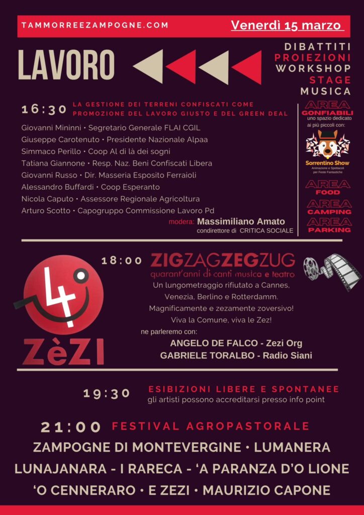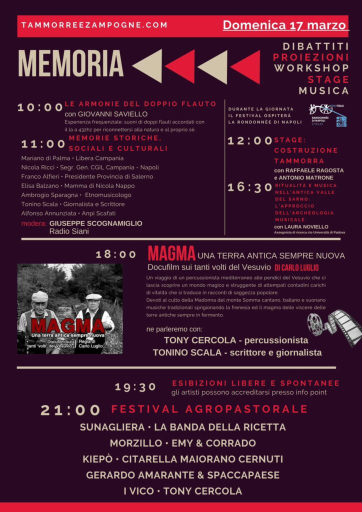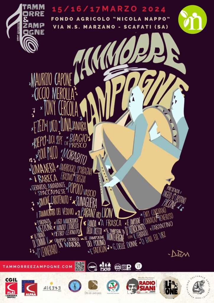 La seconda edizione del Festival internazionale Tammorre & Zampogne si terrà a Scafati (NA) dal 15 al 17 marzo 2024 nel fondo agricolo confiscato alla camorra, intitolato alla memoria della vittima innocente Nicola Nappo.