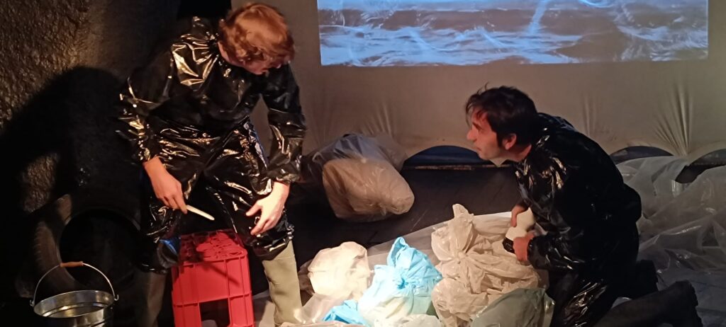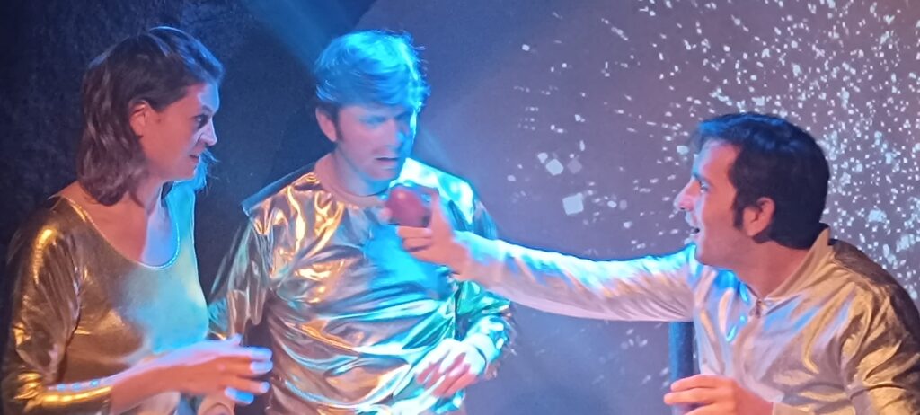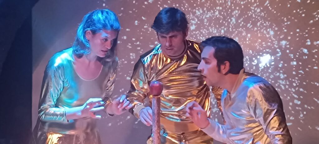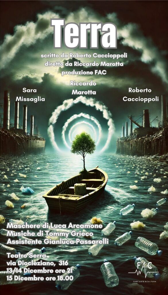 Terra, lavoro del gruppo “Fare arte e cultura”, con la regia curata da Riccardo Marotta, insieme al lavoro di Roberto Caccioppoli e Sara Missaglia, porta in dote al Teatro Serra, una visione futurista e apocalittica, sulla madre terra, capace nella sua illogicità ormai raggiunta, di farci interrogare sui comportamenti attuali della razza umana, talvolta futili, quanto tesi all’indifferenza. Un filo narrante, che appare come un interrogativo costante, che accompagna lo spettatore in una deriva incessante e alienante, causata dall’umanità, con la sua apatia, verso le tematiche sociali e ambientali. Uno specchio, dove si riflette il mondo di sotto e l’Eden, attorniato, dalla finzione del reality show, che trasuda di competitività, e apparenza, con una società non troppo distante, seppur ideata nel futuro prossimo, dai tempi attuali, e che consegna un lavoro teatrale arguto, visionario e pungente.