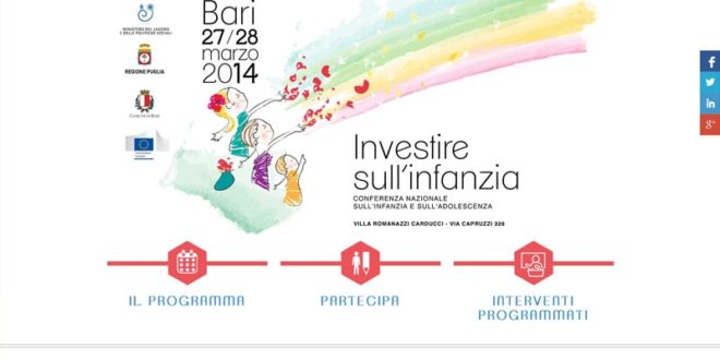 A Bari il 27 e 28 marzo in Villa Romanazzi Carducci, presso via Capruzzi, al via la due giorni di incontri intitolata ‘Investire sull’infanzia’. Una conferenza nazionale sull’infanzia e sull’adolescenza, che mira ad individuare il tema principale della conferenza come fattore che maggiormente influenza la produttività nel campo del lavoro, sia nel campo …