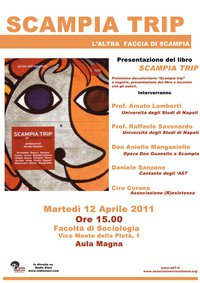 martedì 12 aprile · 15.00 – 18.00Aula Magna della Facolta di Sociologia di Via Monte della Pietà, 1 (Na)Presentazione del libro “Scampia trip” (Ad Est dell’Equatore, 2010) Proiezione del documentario “Scampia trip” di Luigi PingitoreInterverranno:Prof. Amato Lamberti: Università degli Studi di NapoliProf. Raffaele Savonardo: Università degli Studi di …