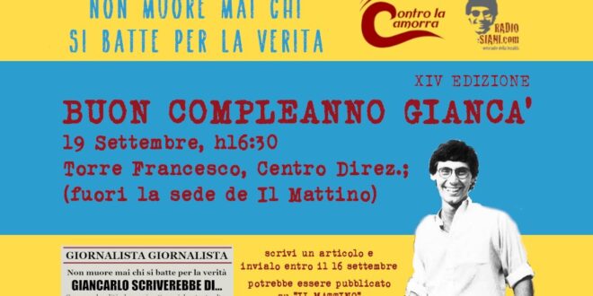 Si chiude la settima edizione di “Giancarlo scriverebbe di”, contest giornalistico in ricordo di Giancarlo Siani che permette a tutti di essere giornalisti giornalisti per un giorno. L’Associazione Contro la Camorra e Radio Siani. il giorno 19 settembre hanno incontrato la sede de Il Mattino con i cittadini e le …