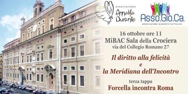Mercoledì 16 ottobre p.v. alle ore 11 presso la Sala Crociera del Ministero dei Beni Culturali prenderà il via la terza tappa del progetto “Il diritto alla felicità e la Meridiana dell’incontro”, ideato dall’Associazione Annalisa Durante ed attuato in collaborazione con Asso.Gio.Ca., sotto il patrocinio della Presidenza del Consiglio dei …