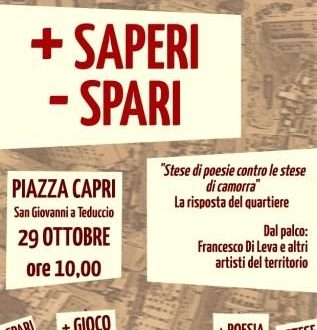 Leggi Tutto »A sei mesi di distanza dall’ultima manifestazione contro le “stese” di Camorra il quartiere di San Giovanni a Teduccio riscende in piazza. Oltre 500 ragazzi delle scuole del territorio hanno tappezzato il quartiere del Rione Villa con poesie e messaggi positivi.