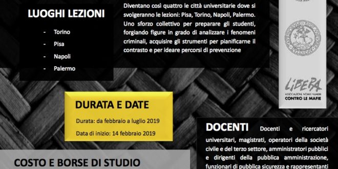 Leggi Tutto »Sono aperte le iscrizioni alla IX edizione (a.a. 2018/2019) del Master in Analisi, prevenzione e contrasto della criminalità organizzata e della corruzione.